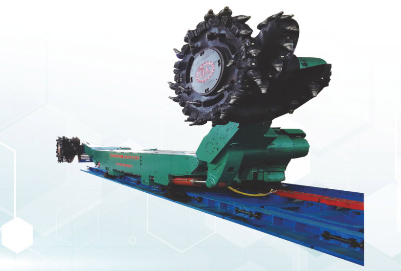 其次是截割破煤的核心過程。截割滾筒表面裝有呈螺旋排列的硬質合金截齒(硬度可達 HRC60 以上),當滾筒旋轉時,截齒以一定的切削角度切入煤層。截齒尖端的高壓(可達數百兆帕)會破壞煤體的內部結合力,使煤層碎裂成小塊;同時,滾筒的螺旋葉片會隨旋轉產生軸向推力,將破碎后的煤塊沿葉片導程推向刮板輸送機的溜槽內。為提升破煤效率,滾筒設計通常采用 “雙螺旋” 結構,左右兩個滾筒分別向中間輸送煤塊,避免煤料堆積在機身下方,確保截割與輸送同步進行。